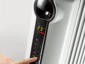 Be the first to write a review.Indulge in the warmth of the 1500-watt TRRS0715E De’Longhi radiant heater, featuring a digital LED control panel and 24-hour timer. This oil-filled radiator portable heater features an intuitive ECO function, which maximizes comfort and efficiency by automatically adjusting heat and power settings. Uniquely designed to deliver up to 35% more radiant surface area, the TRRS0715E maximizes gentle heat flow that won’t dry out your air or stir up allergens. What’s more, Real Energy lets you enjoy uninterrupted heat while raising the room temperature to your desired setting.